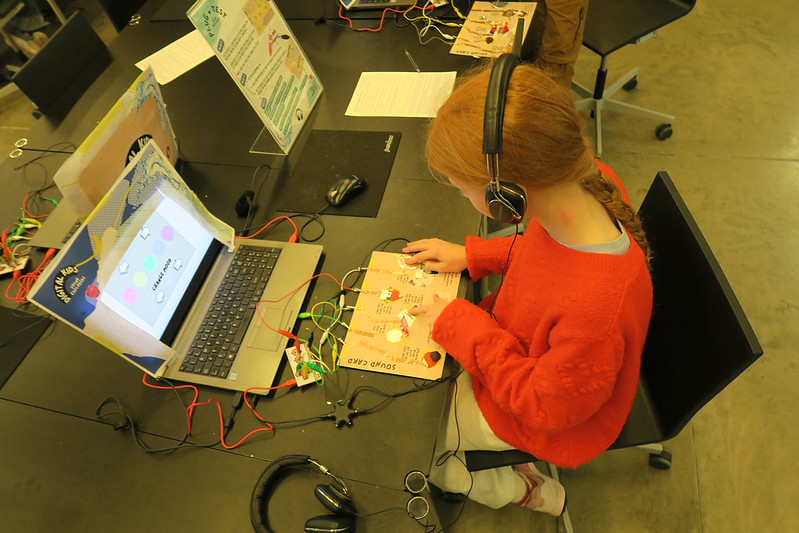 Wandering the galleries soaking in the atmosphere we headed down in the Learning Centre, the mood shifted, the half-term programme Tiny Kids Sound Explorers was in full swing, a hands-on workshop where children used conductive materials to build their own instruments. With Makey Makey boards, they learned how touch could trigger sound. Afterwards, they moved on to create portraits around the theme of energy.