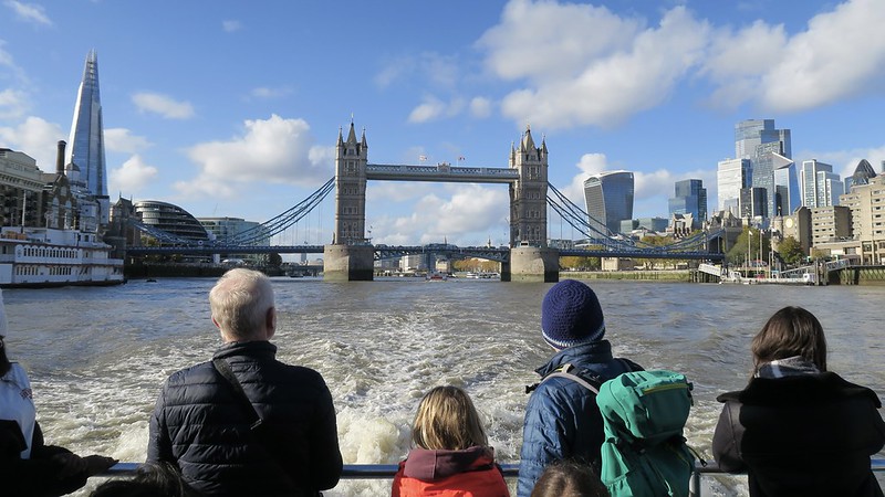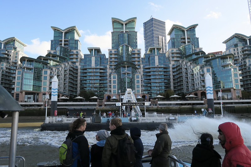 Boarding the RB6 Uber Thames Clipper at Putney Pier, the sun was still shining and there was that unmistakable weekend buzz, London waking up at its own pace. From the open deck, the city slowly unfolded as we glided east. The boathouses of Putney gave way to Battersea’s glass towers and the brick grandeur of its Power Station. Past Chelsea and Vauxhall’s swirl of cranes, the river curved toward the skyline of Westminster, the familiar spires and clock tower glowing gold in the sunlight.