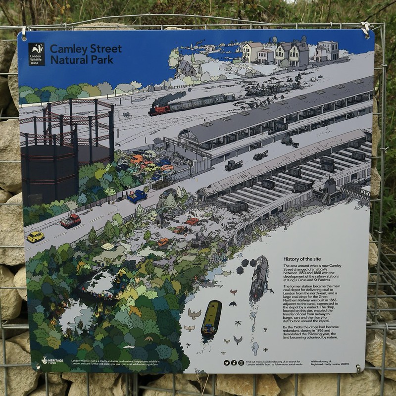 Run by the London Wildlife Trust, the site was once part of London’s old industrial heart, full of gasworks, coal yards, and railway sidings in the 1800s. Over time, nature crept back in and now it is filled with reeds, butterflies and birds darting between the trees. The signs dotted around the reserve show what it used to look like.