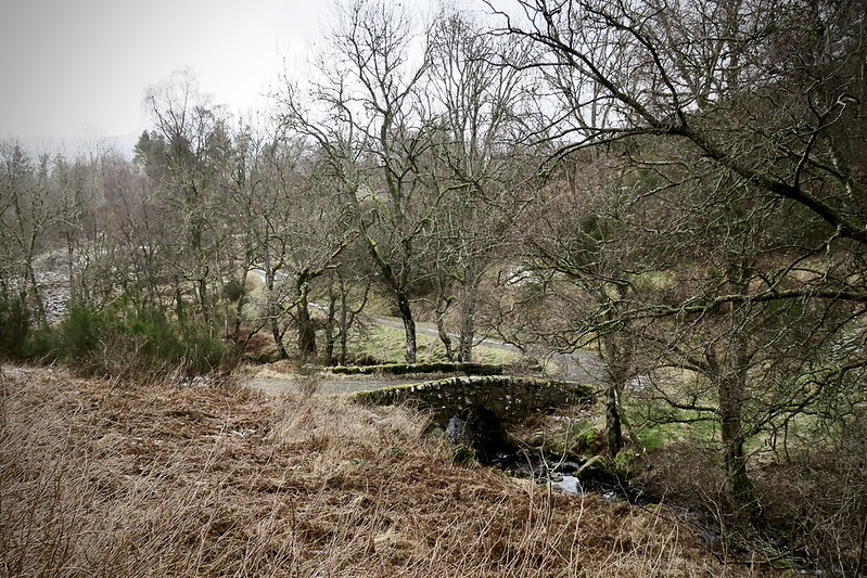 As we headed back conifers thinned into deciduous woodland, moss crept across stonework and the burn deepened its channel. Almost hidden among the trees stood the Old Humpback Bridge; an arched stone crossing likely built in the late 18th or early 19th century to carry horses, timber carts and estate workers across Balmenoch Burn. Its humped profile allowed floods to surge beneath; a simple, enduring design from another era.