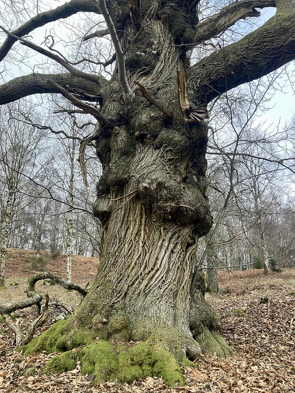Just upstream a little down stream water slipped over a small waterfall, likely once shaped or cleared to form a picturesque feature along estate walking routes. Then on our way back to the croft we had a little detour to visit the ancient sweet chestnut trees. I imagine they were planted two to three centuries ago as ornamental parkland specimens. Living witnesses to the land’s transformation from manicured estate to sporting hills, forestry and now rewilding landscape.